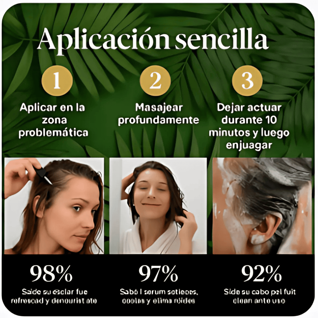 ✨Aplica unas gotas directamente en el cuero cabelludo y masajea suavemente con las yemas de los dedos 2 a 3 veces por semana para mejores resultados.