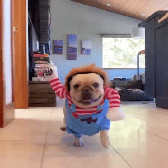 Ya no más fotos donde tu perro pasa desapercibido . Dale un toque especial con el disfraz de Chucky, y convierte cada imagen en un recuerdo único que hará reír a todos por años.